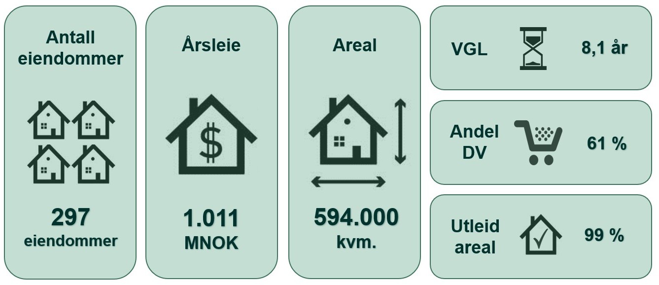 - Etter vi lukket bøkene for 2. tertial har vi vært aktive på transaksjonsmarkedet, både ved kjøp av flere REMA 1000 eiendommer i Danmark og salg av eiendommer i Nord-Norge. Vi har betydelig løfteevne og store ambisjoner for videre vekst, p.t med hovedfokus på gode dagligvarelokasjoner i Danmark, men vi er også åpne for gode beliggenheter i Norge hvis prisen er riktig, sier adm.dir. Jane K. Gravbråten.