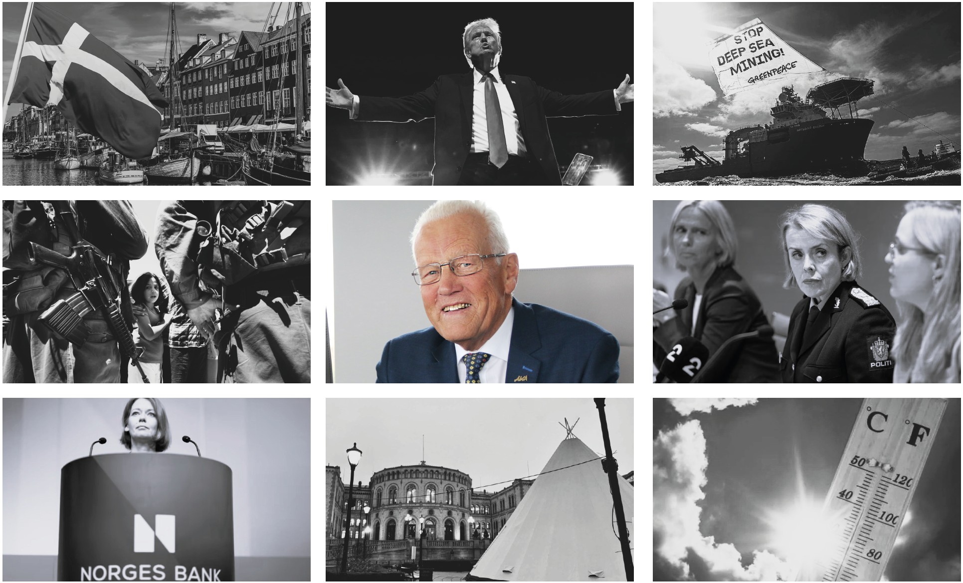 For Norge ble året en påminnelse om hvor tett landet er vevd inn i globale strømninger. PST hevet trusselnivået til “høy”, og debatten om forsvar og NATO-forpliktelser tiltok. Regjeringen satte planene om havbunnsgruvedrift i Arktis på pause – en viktig markering av klimaansvar i møte med økonomiske interesser. Samtidig ga Stortinget en historisk unnskyldning til samiske, kvenske og skogfinske minoriteter. Høye renter presset husholdninger og næringsliv, og helseminister Ingvild Kjerkol gikk av etter plagiatskandale. Norges utenrikspolitikk ble tydeliggjort med anerkjennelsen av Palestina som stat.